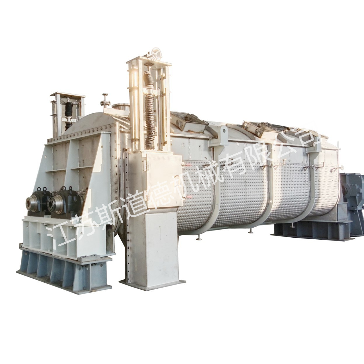 — 能耗低:由于間接加熱,沒有大量攜帶空氣而帶走熱量,干燥機外壁又設(shè)置夾套和保溫層,對漿狀物料,蒸發(fā)1kg水僅需1.1-1.3 kg飽和蒸汽。