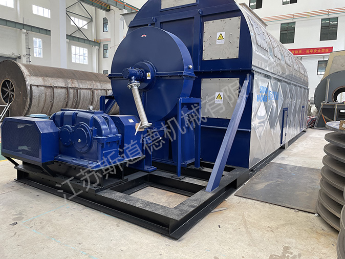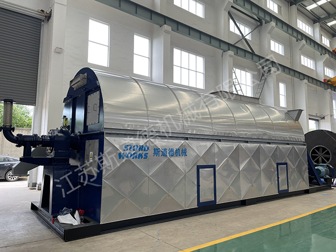 ?? GSD型管柬干燥機結構為國固定的殼體內(nèi)安裝可轉動的加熱管束。蒸汽通過旋轉接頭進入管內(nèi)傳熱變?yōu)槔淠懦?,物料中的水分在管外受熱變成蒸汽,由負壓風機排出,物料在管束內(nèi)被轉動的料鏟拋灑,均勻落至加熱管外表面,并從進料口端由料鏟推動至出料口端,從而達到良好的干燥效果。